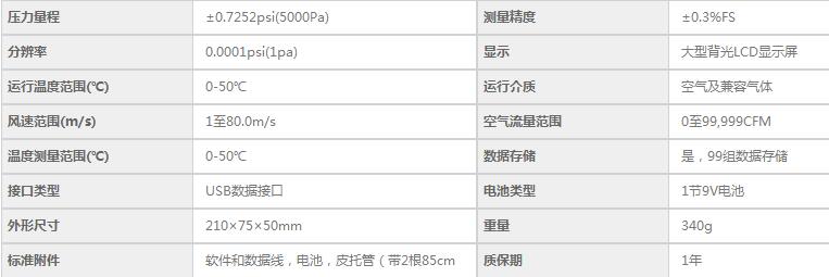 Extech HD350皮托管風(fēng)速計(jì)/壓差計(jì)技術(shù)規(guī)格