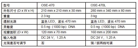 OSE-470/470L切膠儀/藍(lán)光透射儀此儀器還可應(yīng)用于其它激發(fā)波長在470-520 nm 的熒光觀測(cè),如GFP標(biāo)記的蛋白、小型動(dòng)植物。