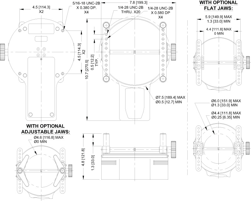 MESURgauge 測量軟件:可顯示時間與位移的關(guān)系、計算統(tǒng)計測量結(jié)果、Excel報告輸出等.需要數(shù)據(jù)線纜more info 加長圓柱:加長圓柱2.5" (63 mm) 4" (101 mm) 平口夾具:可用于夾持直角實(shí)驗(yàn)樣品等 可調(diào)夾具CT003:4邊防滑設(shè)計、可調(diào)節(jié)開口尺寸、容納多種樣品規(guī)格 校準(zhǔn)套件:可用于自行校準(zhǔn)TT01瓶蓋扭力計,套件不包括砝碼。 攜帶式儀器箱:可裝TT01瓶蓋扭力計,夾具,充電器,及配件. 不銹鋼加載臺:預(yù)留安裝螺紋孔適用于特殊工裝的安排
