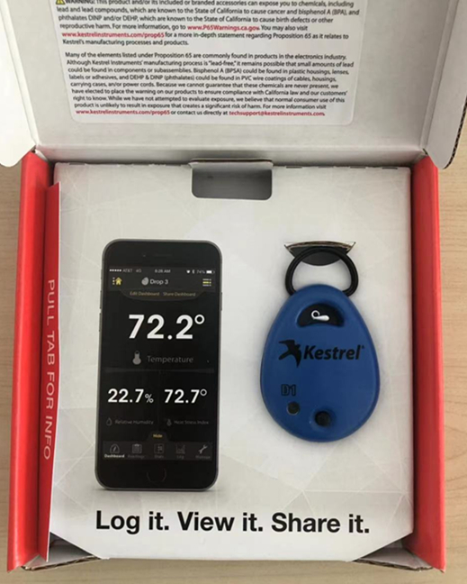 Kestrel記錄儀是容易使用的堅(jiān)固的環(huán)境數(shù)據(jù)記錄器。在三種型號(hào)–Kestrel D1溫度記錄儀,Kestrel D2溫濕度記錄器,Kestrel D3溫度、濕度和壓力記錄儀,三種型號(hào)都支持實(shí)時(shí)傳送圖表和數(shù)據(jù)到您的手機(jī)或平板電腦。 ●藍(lán)牙智能(無(wú)線技術(shù)) ●數(shù)據(jù)記錄器 ●跌落測(cè)試,MIL-STD-810G ●IP67防水 ●輕質(zhì)耐用 Kestrel D1記錄器的設(shè)計(jì)可使用在任何你需要跟蹤的環(huán)境。體積。6×4.5×2.3cm),準(zhǔn)確,堅(jiān)固耐用(跌落測(cè)試,MIL-STD-810G),防水(IP67防水),重量只有34g。 每個(gè)Kestrel D1記錄器的CR2032鋰電池可持續(xù)使用4個(gè)月,存儲(chǔ)超過(guò)13000組的溫度讀數(shù)。