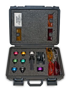 OFK-8000 OPTIMAX™ Multi-Lite™ 多波段警用檢查套裝配有結(jié)實(shí)的黑色陽極化鋁手電殼體、八個(gè)可快速更換的LED燈頭(UV-A(長波紫外)、紫光、藍(lán)光、藍(lán)綠光、綠光、琥珀光及白光)、三個(gè)插入式濾色板(黃色、橙色及紅色)、交流及直流充電器、四個(gè)眼鏡(紫外防護(hù)、橙色、黃色及紅色眼鏡)及一個(gè)帶泡墊的手提箱.。