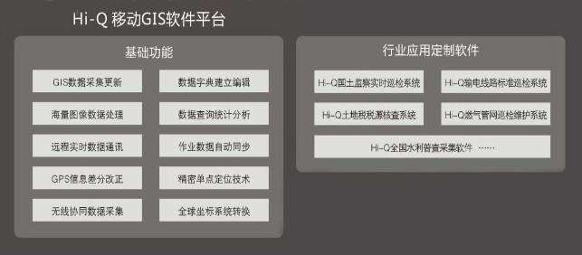 Hi-Q GIS數(shù)據(jù)采集軟件 專業(yè)為GIS應(yīng)用而設(shè)計的高效率移動GIS平臺軟件,能輕松的幫您實現(xiàn)點、線、面、圖形等復雜外業(yè)GIS數(shù)據(jù)的采集和更新工作。Hi-Q軟件采用模塊化設(shè)計,能根據(jù)您的項目需要快速實現(xiàn)工作流程定制,提高工作效率。 圖形化界面設(shè)計,形象易懂,操作簡單 >方便的數(shù)據(jù)字典編輯功能,可預先建立或外業(yè)實時編輯 >提供多種位置數(shù)據(jù)和屬性數(shù)據(jù)的采集方式 >方便的長度、面積測量、計算和統(tǒng)計功能 >海量柵格和矢量圖像數(shù)據(jù)的快速處理能力 >支持遠程實時無線數(shù)據(jù)通訊和自動數(shù)據(jù)同步 >集成PPP(精密單點定位)技術(shù) >支持SBAS、實時差分、后處理、靜態(tài)采集等工作模式 >可通過藍牙協(xié)同數(shù)碼相機、測距儀等進行數(shù)據(jù)采集 >快速的移動GIS行業(yè)應(yīng)用軟件定制能力