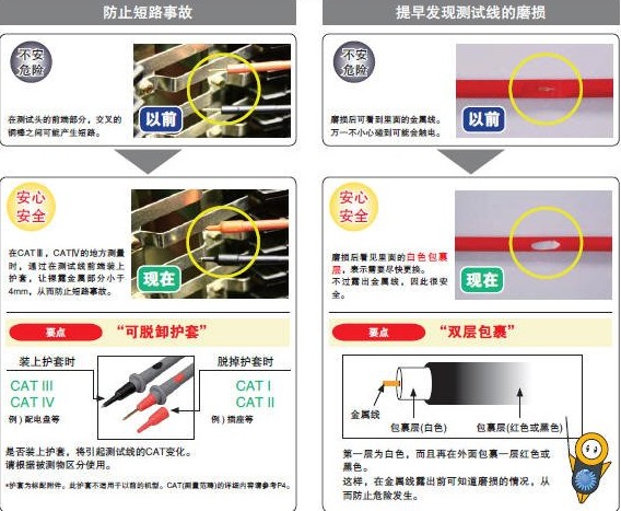 日置3244-60卡片型萬(wàn)用表測(cè)試探棒升級(jí)前后對(duì)比 |