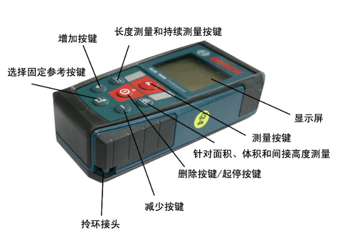 博世GLM7000激光測距儀的標準配置:GLM 70 主機、 保護袋 、 2 x 1.5 伏電池 、制造合格證、說明書