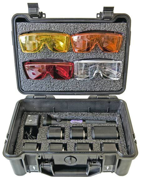 蘭寶 Astra Torch LED – 基礎(chǔ)套件包括: o 1 個(gè)燈體 o 1 個(gè)紫外燈頭(選擇1°或 5°) o 1 個(gè)鋰電池 o 1 個(gè)充電器 o 4 個(gè)防護(hù)眼鏡(紫外,紅色,橙色,黃色) o 1 個(gè)IP67專用工具箱