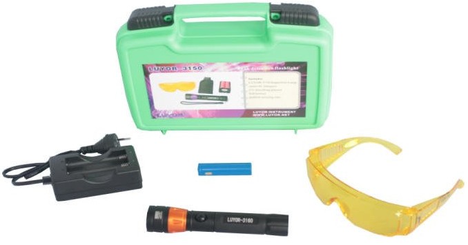 熒光檢漏燈LUYOR-3160一個(gè),交流充電器一個(gè),鋰電池一塊,LUV-10紫外防護(hù)眼鏡,熒光加注標(biāo)貼10張,塑料手提箱一個(gè)。
