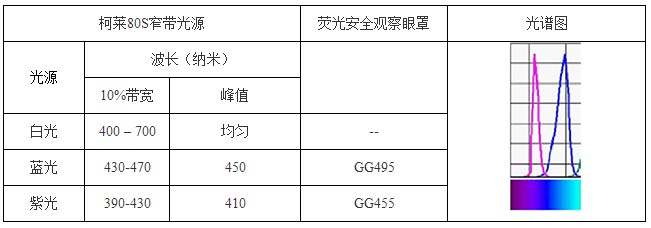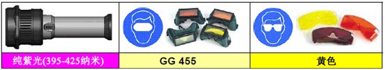 注意事項(xiàng): ★勘查時必須佩帶GG495觀察眼罩 ★拍照必須加GG495濾色鏡 ★使用環(huán)境:盡量選用暗場環(huán)境