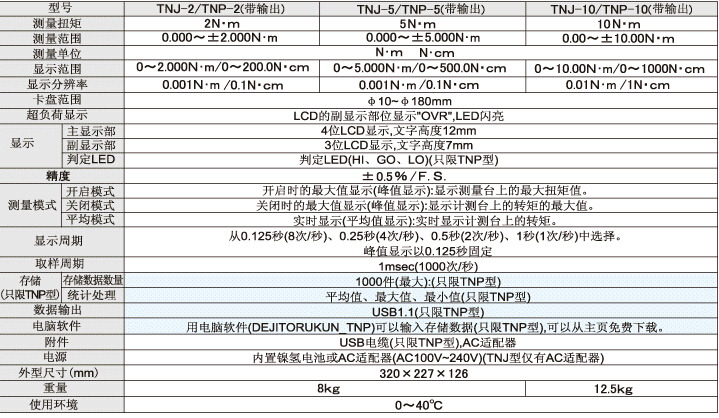 扭矩和閥門的開啟和關(guān)閉的螺絲帽或插頭擰緊力,具有精度高,數(shù)字扭力計可以測量。通過USB接口,可以導(dǎo)入數(shù)據(jù)從PC專用軟件,方便編輯。 可以測量扭矩開幕式,閉方向栓 可以測量和平均峰值保持峰值扭矩測量表,我買了開放的測量,或在閉栓方向。 在Excel中可以捕捉數(shù)據(jù) 提供“_TNP坤數(shù)字”數(shù)據(jù)采集軟件捕捉到Excel的測量數(shù)據(jù)是有可能的?梢杂行У卦陔娔X上編輯的測量數(shù)據(jù)。創(chuàng)建一個獲得的數(shù)據(jù)的頻率分布圖。 緊湊的設(shè)計 緊湊的設(shè)計320毫米×227毫米×H126mm。如果有一個A4大小的空間,可以測量。 與USB通信功能 通過一個高度通用的USB接口。易PC在數(shù)據(jù)納入合作也確定。 比較功能 合格或不合格值的測定,可測的設(shè)置上下限。判決結(jié)果由LED通知。 循環(huán)設(shè)定顯示 可以切換到(次/秒)1,2,4,8顯示周期。 采用鎳氫電池 AC適配器可用于不采用鎳氫電池。 N・m、N・cm的單位可以進(jìn)行切換。 TNX-0.5mN・m、N・cm可以進(jìn)行單位切換 該系列線路,不僅價格便宜的版本的測試和測量 作為一個簡單的測試,線(記憶功能,判斷功能,沒有USB通信)也TNJ系列系列不僅價格便宜版本的測試和測量